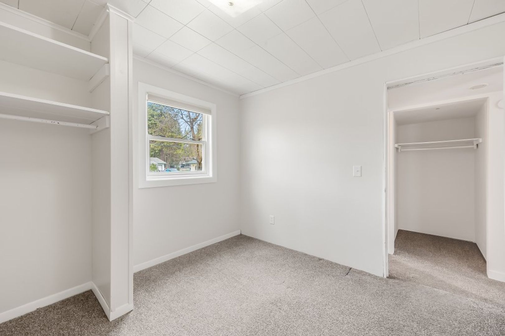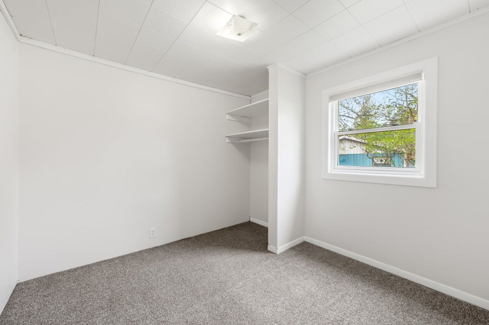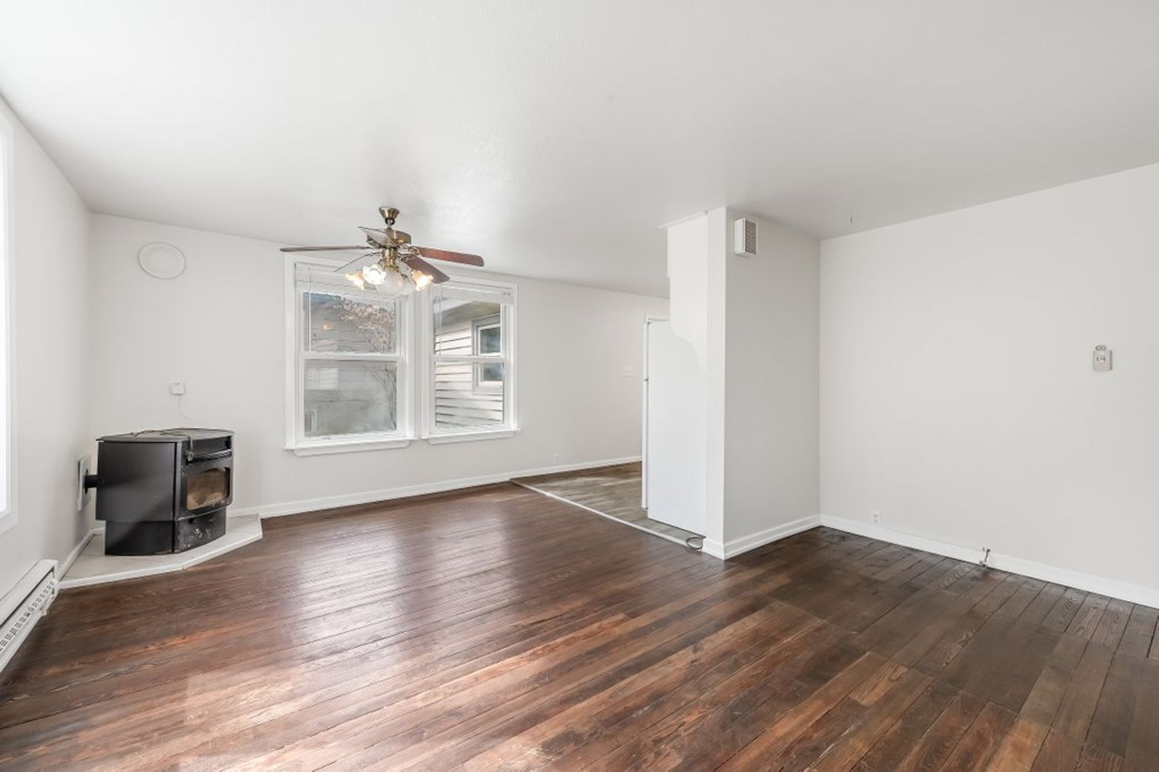 This 1,000 square foot 2 bedroom 1 bathroom home has original hard wood floors, a wood burning stove and kitchen with counter top microwave, dishwasher, electric range and refrigerator.