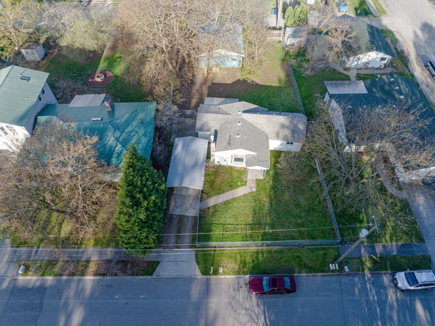 Car port, fully fenced yard and 2 car detached shop with alley access.