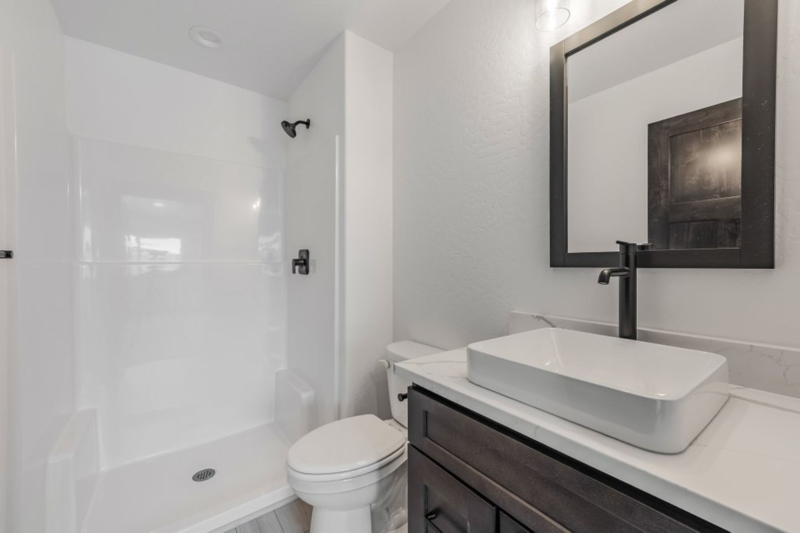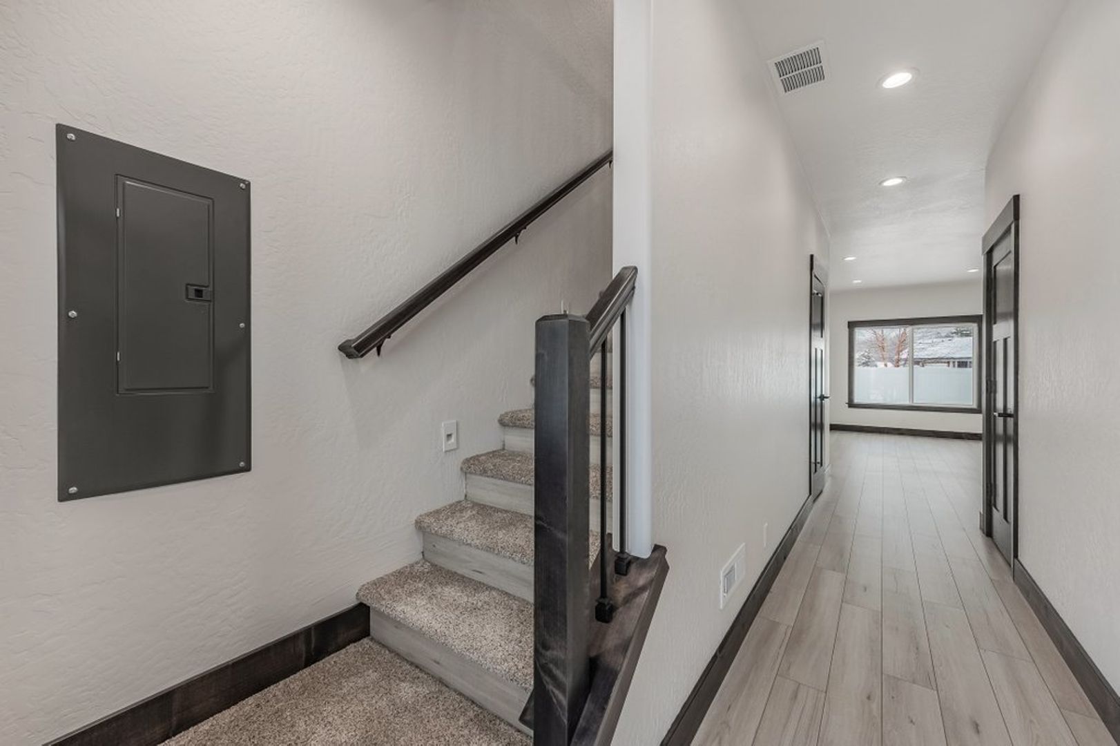 Upstairs has 3 bedrooms, laundry room with washer/electric dryer hook-ups. Primary bedroom has an en-suite bathroom with quartz counters.