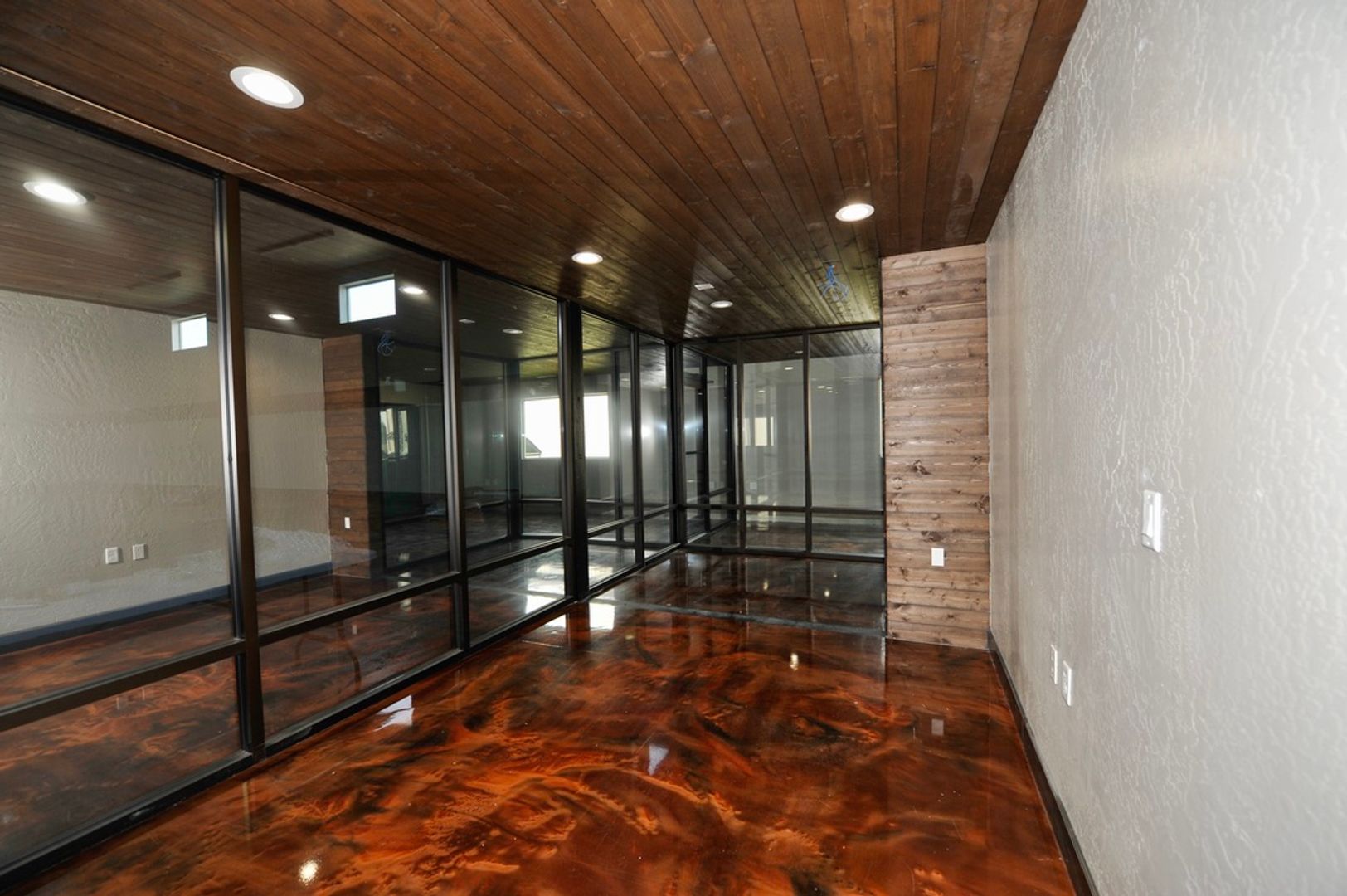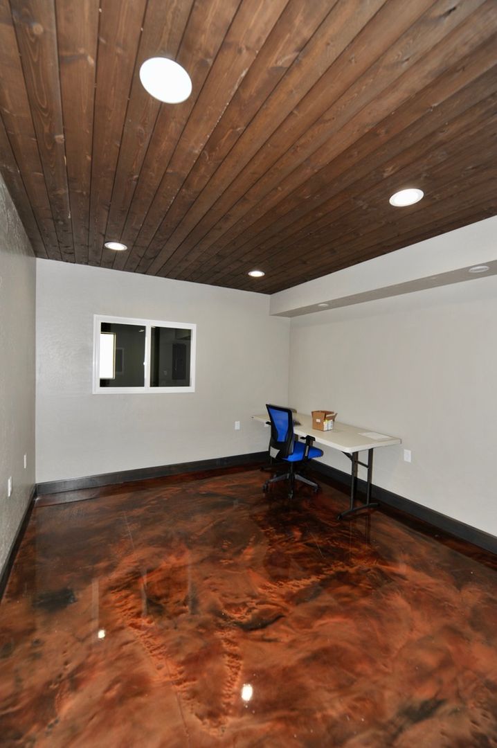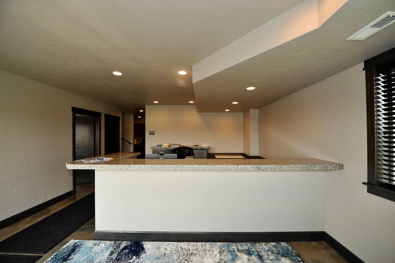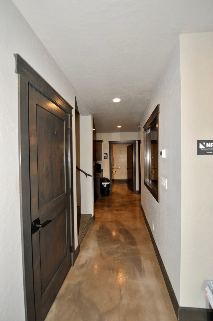 Concrete stained floors, knotty alder doors and trim, Huntwood cabinets, granite lobby counter and much more!