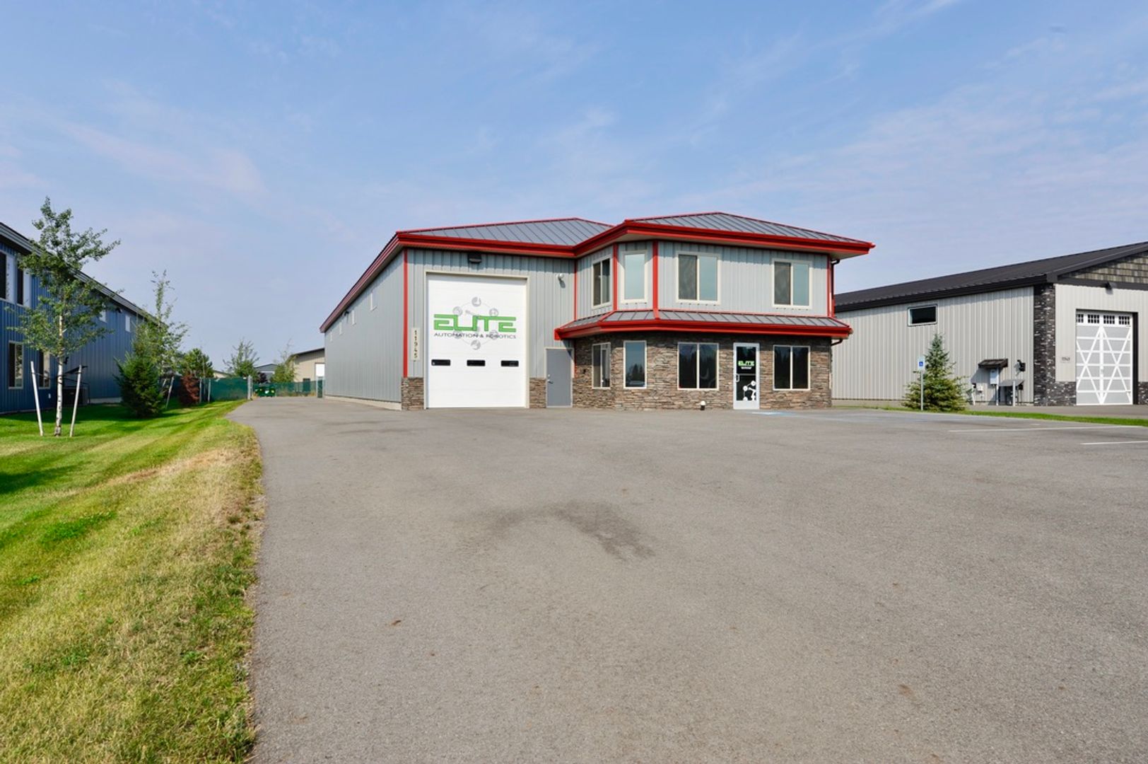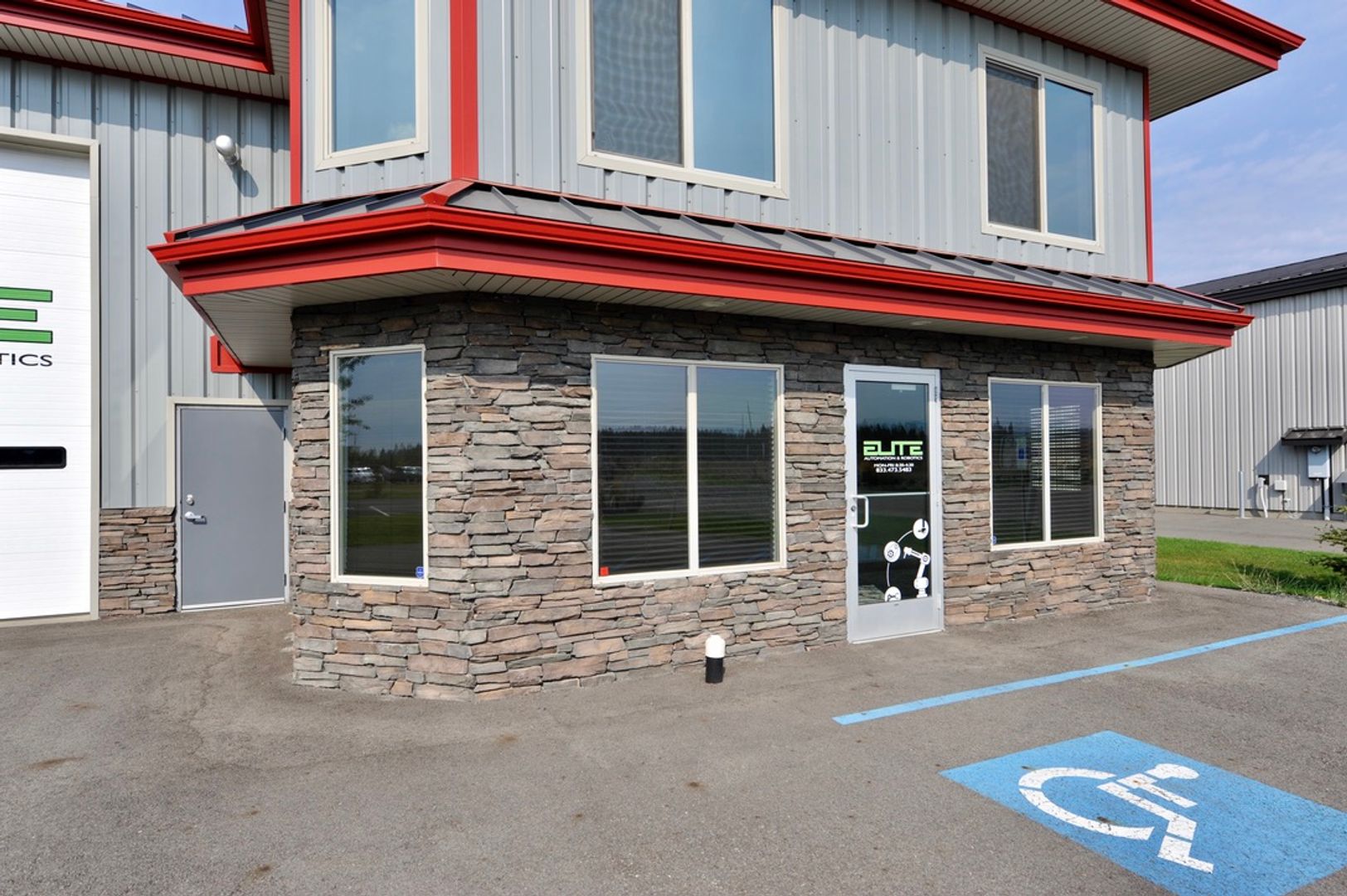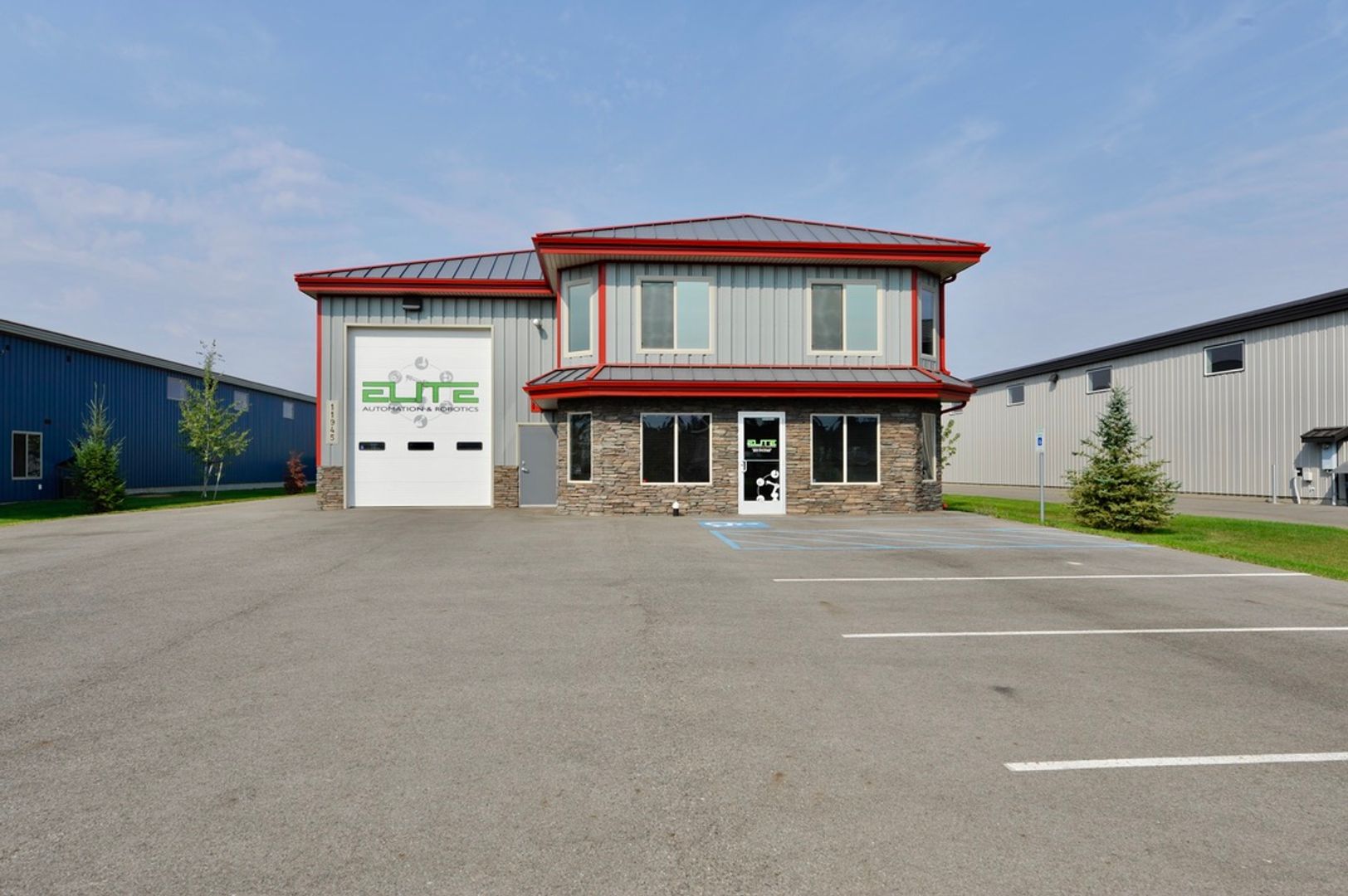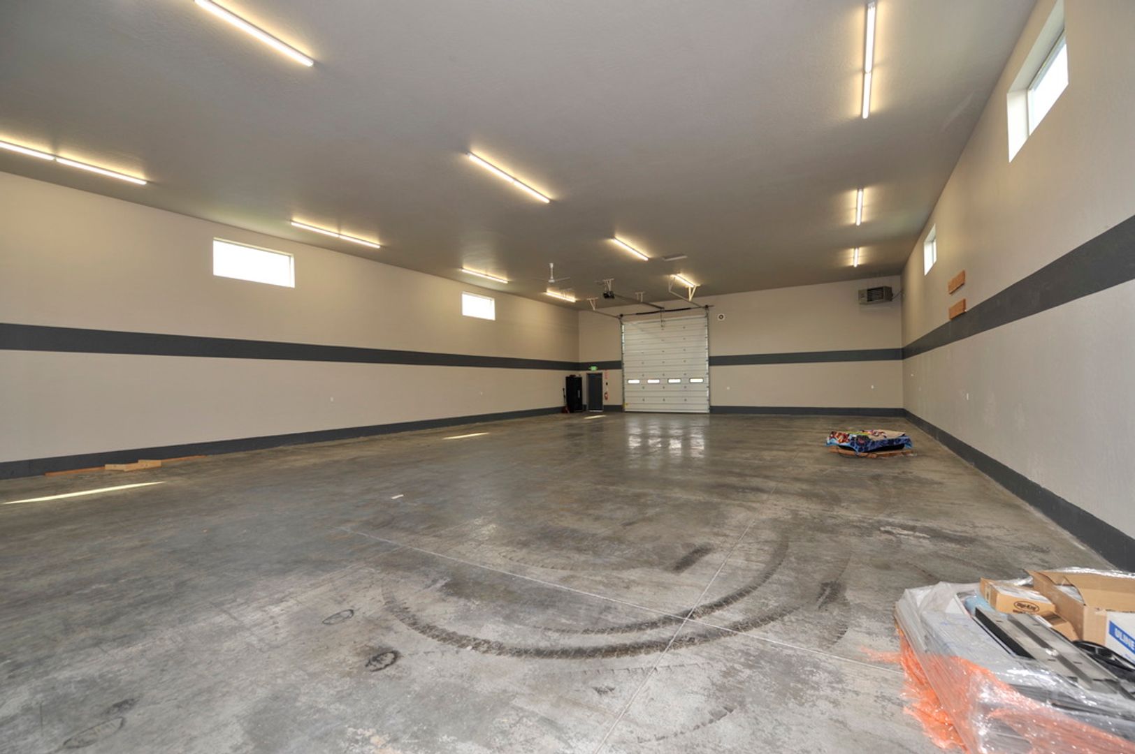 Finished heated warehouse space with 17' ceilings and two 15' tall overhead electric garage doors.