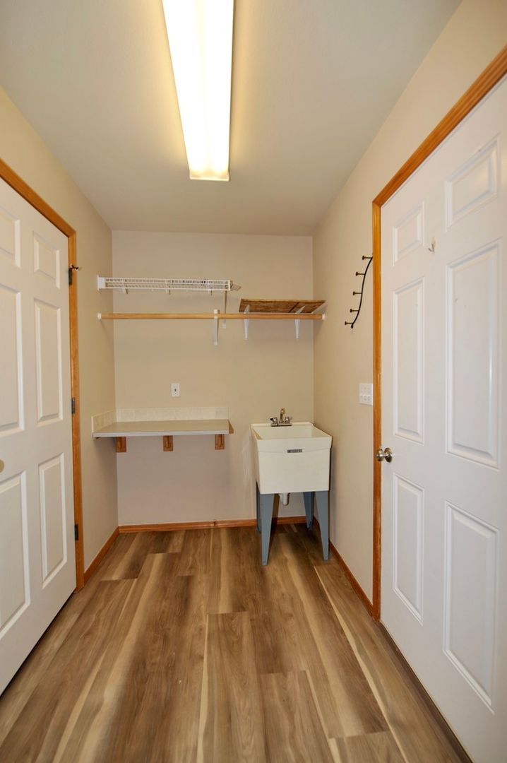 There is A/C a 2 car garage, laundry room with washer/dryer hook-ups, utility sink and 2 inch slat blinds throughout.
