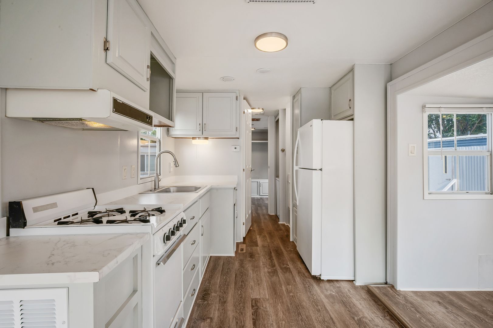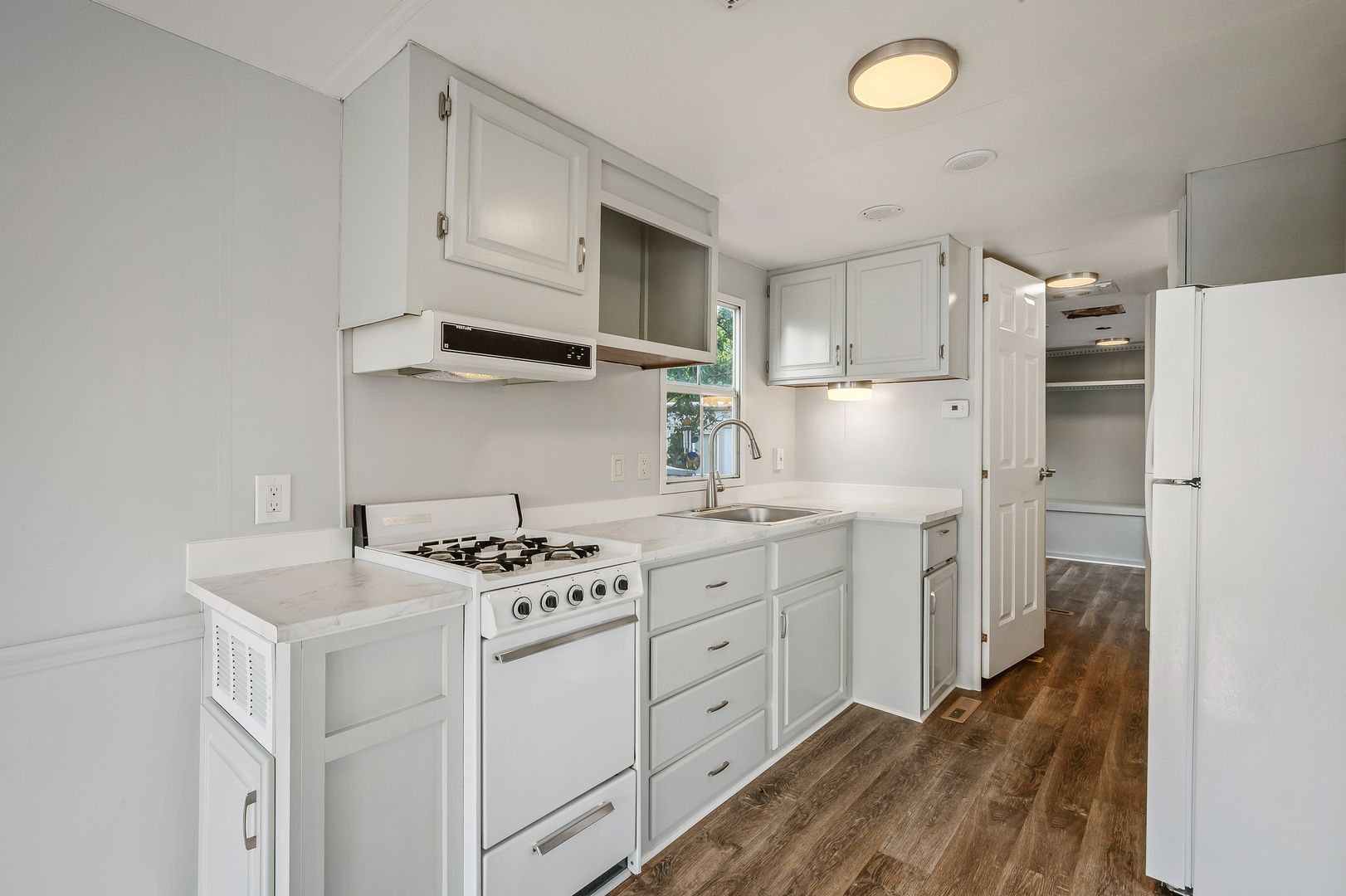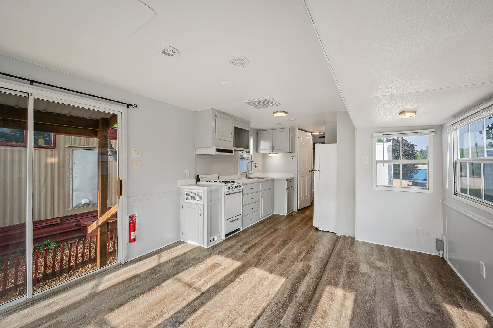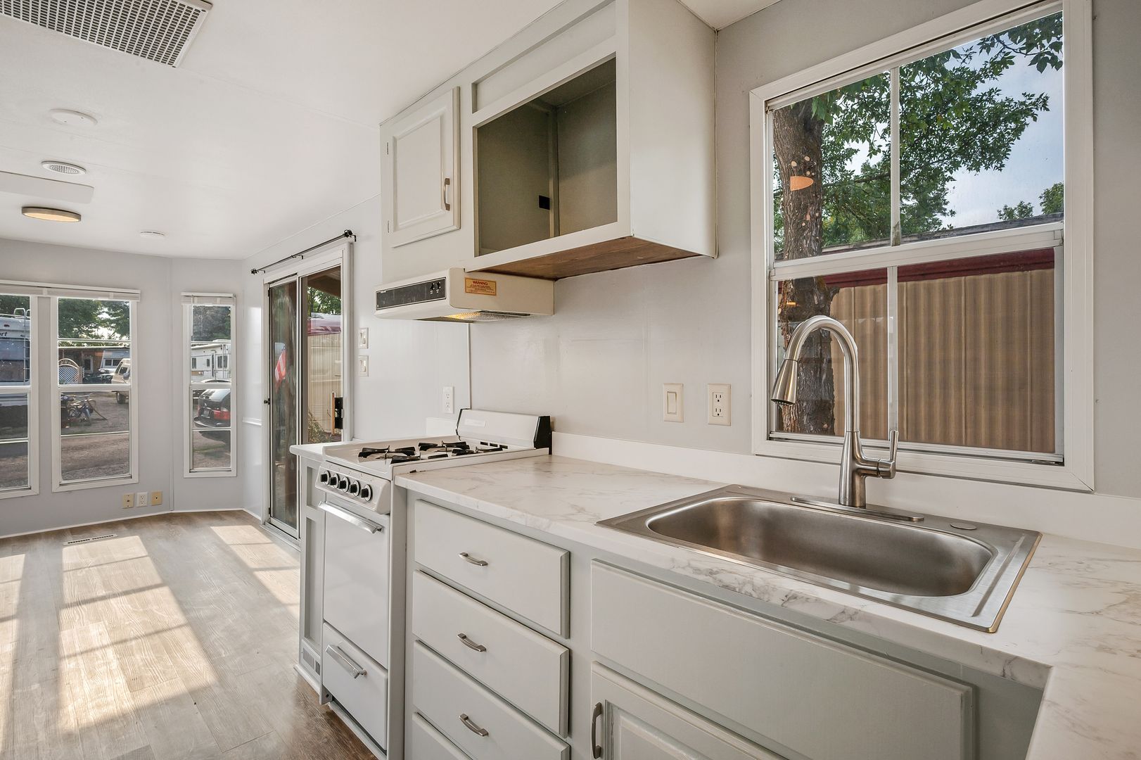 This single-level 1 bedroom, 1 bath park-model trailer features an enclosed yard and was recently remodeled including the kitchen, bathroom, flooring, and paint.