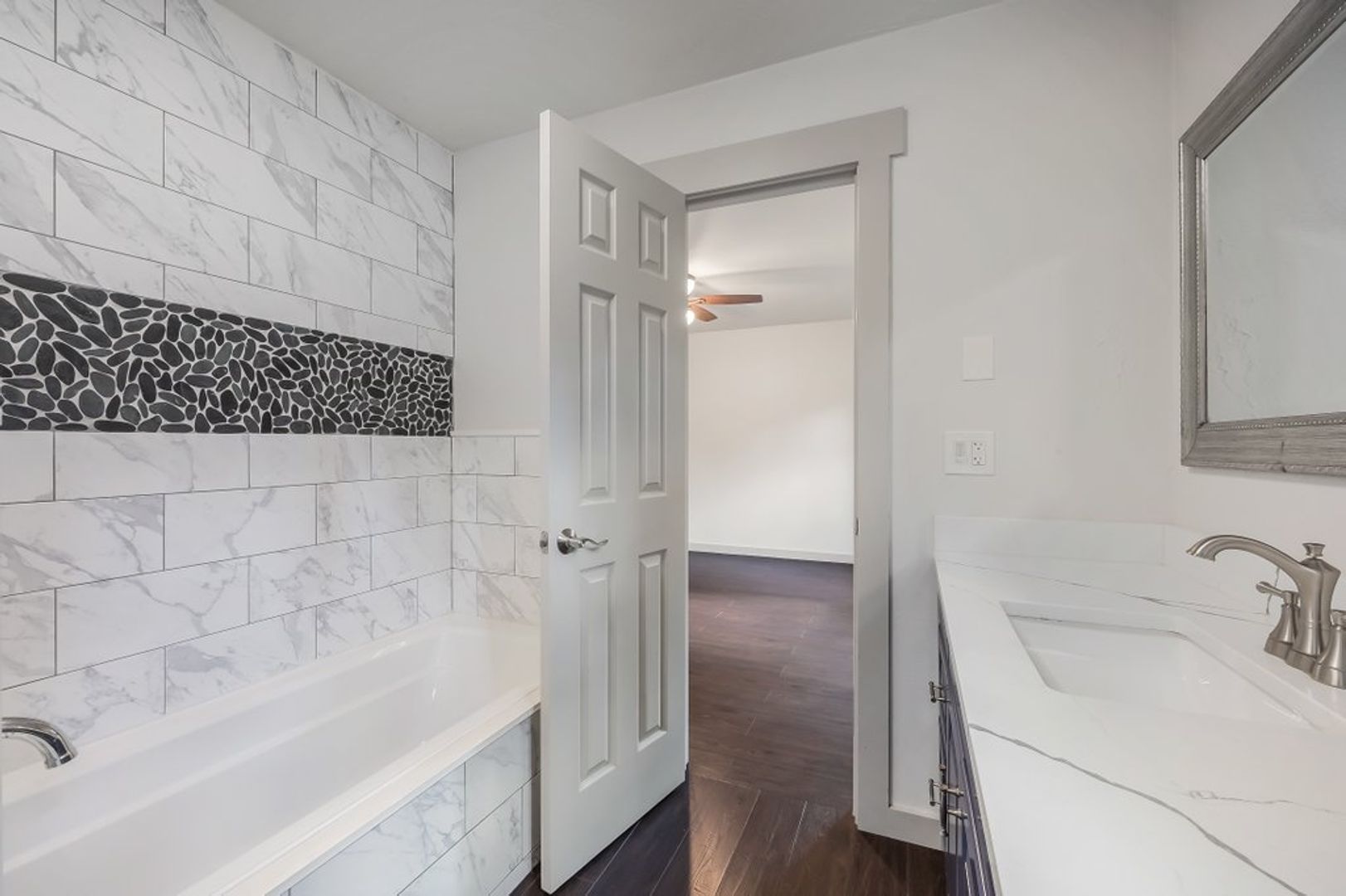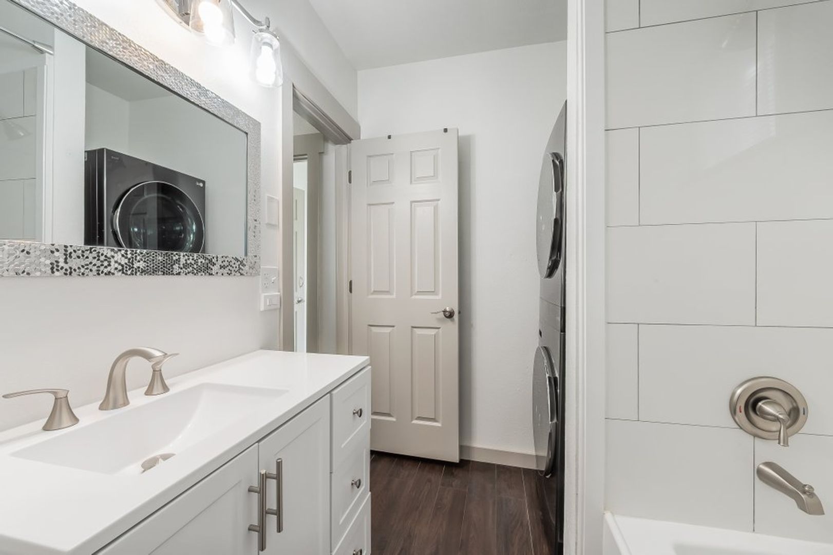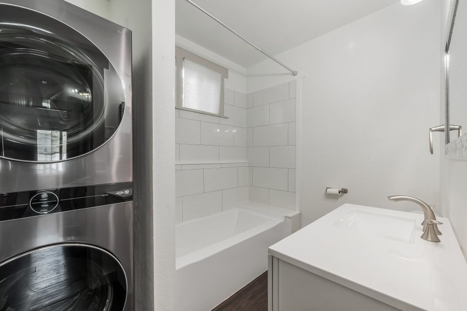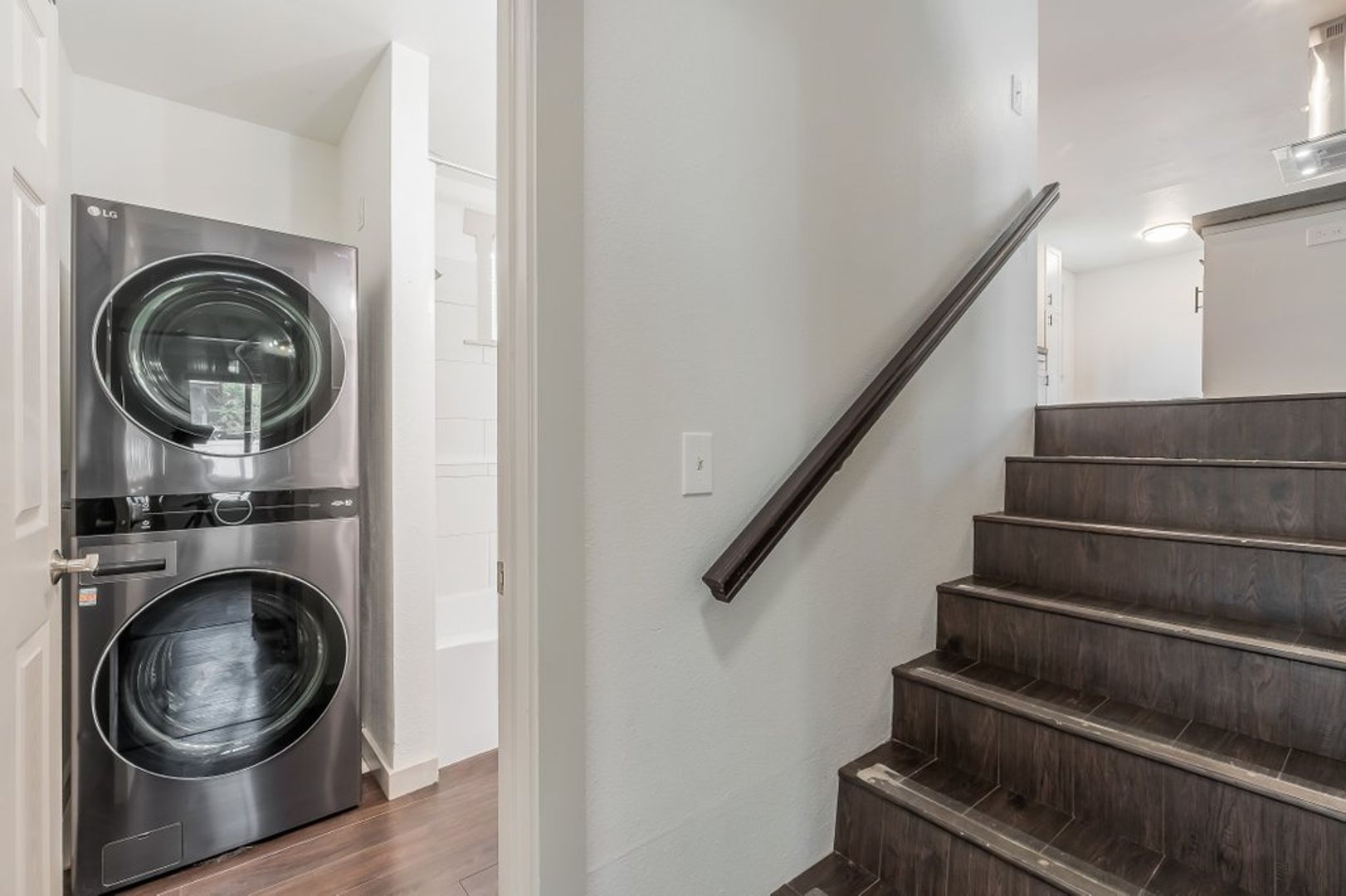 Downstairs has an additional 2 bedrooms and bathroom with tub and stacking washer/dryer.