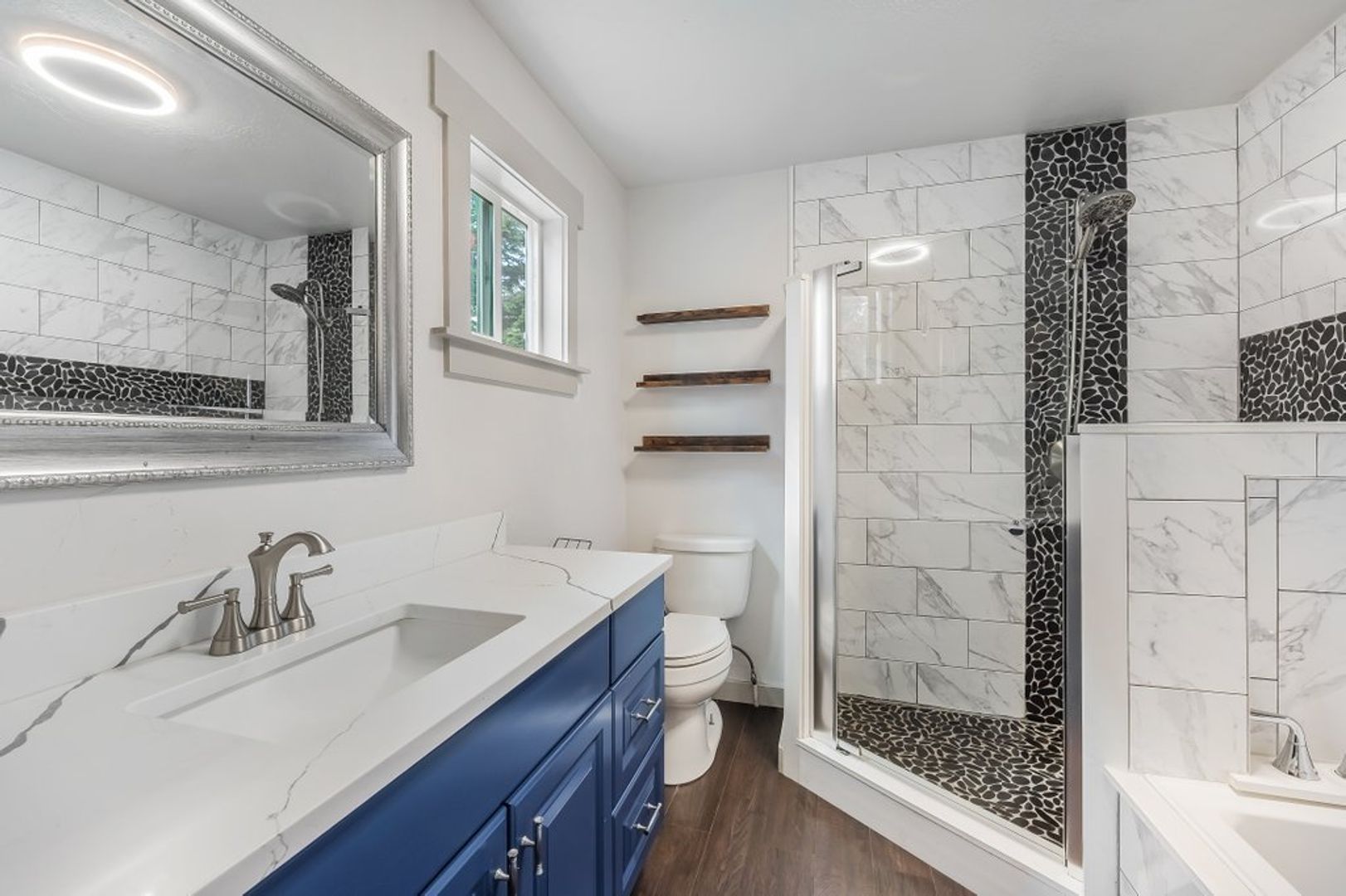 Upstairs has a primary bedroom with en-suite bathroom that includes a soaking tub, walk in shower and vanity as well as a secondary bedroom with linen closet.